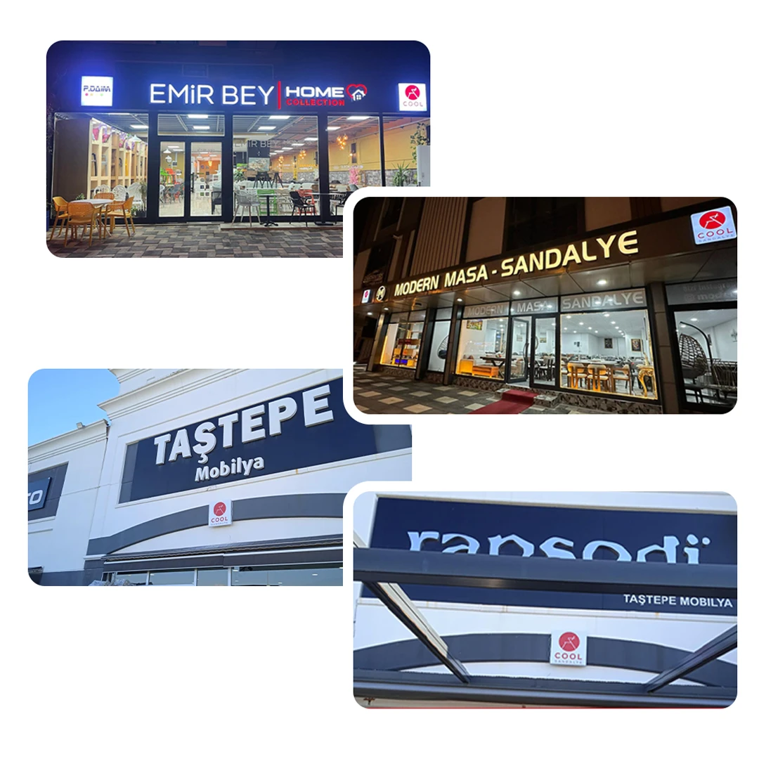 Cool Sandalye olarak bugün itibarıyla farklı bölgelerde faaliyet gösteren 4 bayimizle yolumuza devam ediyor, kaliteyi daha geniş kitlelere ulaştırıyoruz.